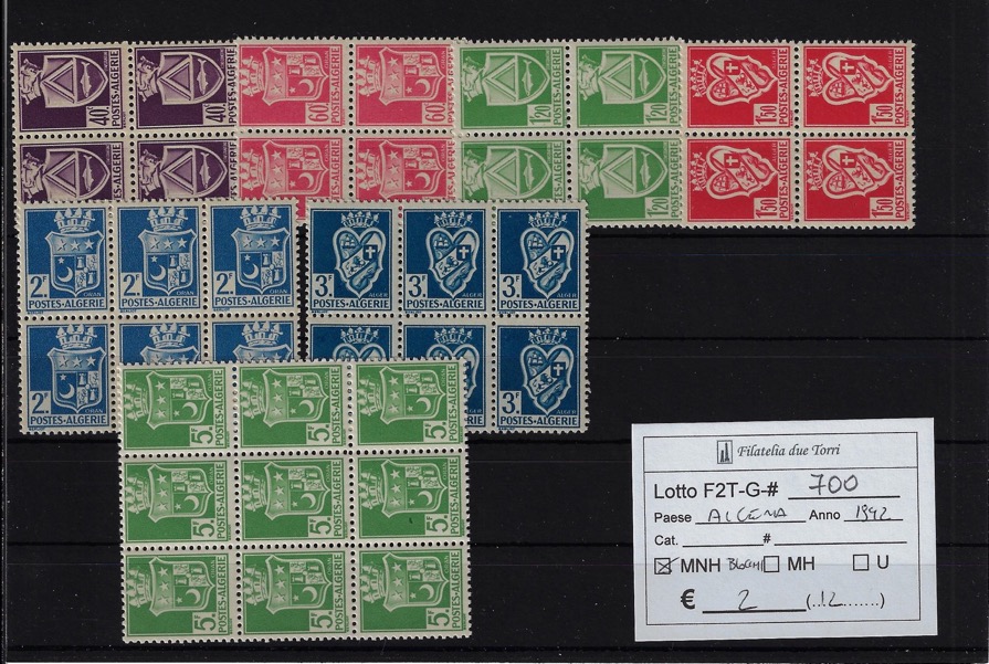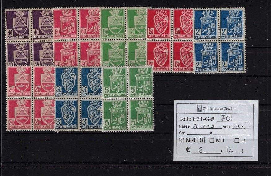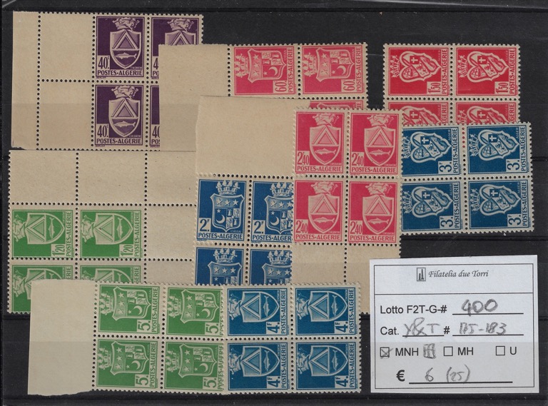 1942 - 1943 Stemmi Yvert & Tellier 175/183 quartine. quantità