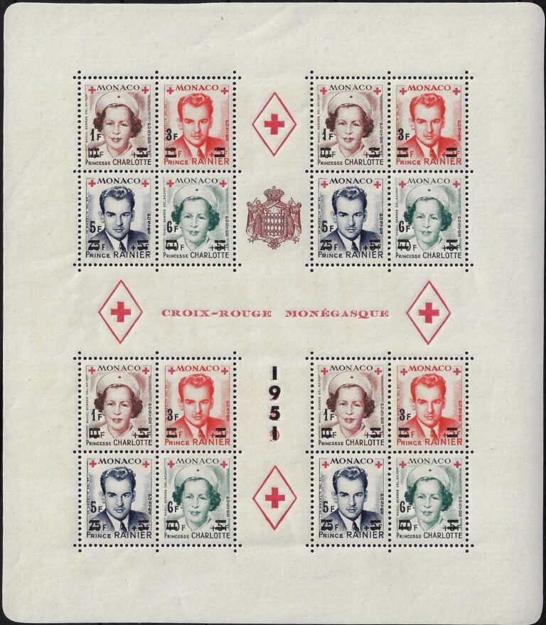 1951 Foglietto PRO Croce Rossa monegasca sovrastampato YT 4A